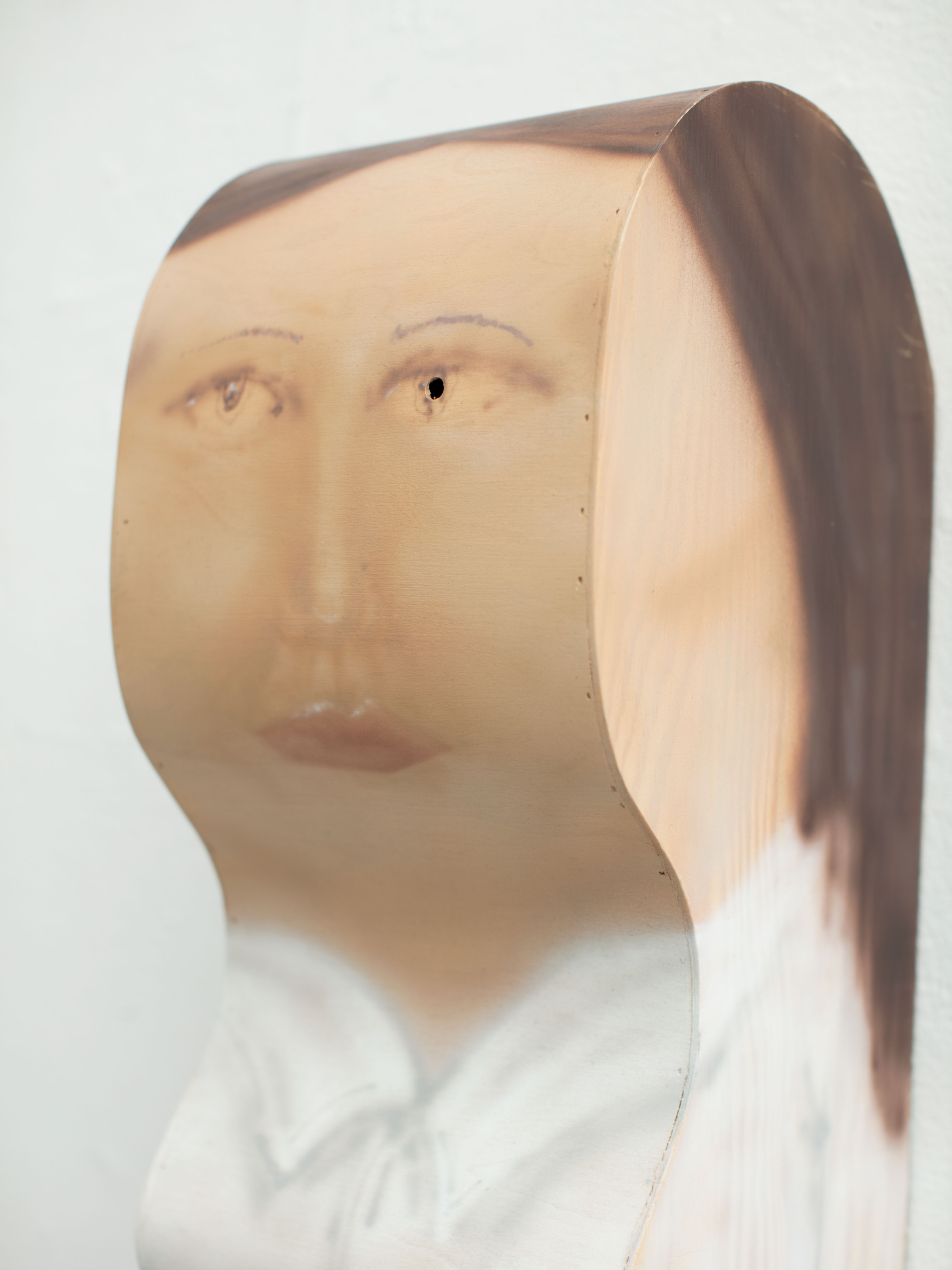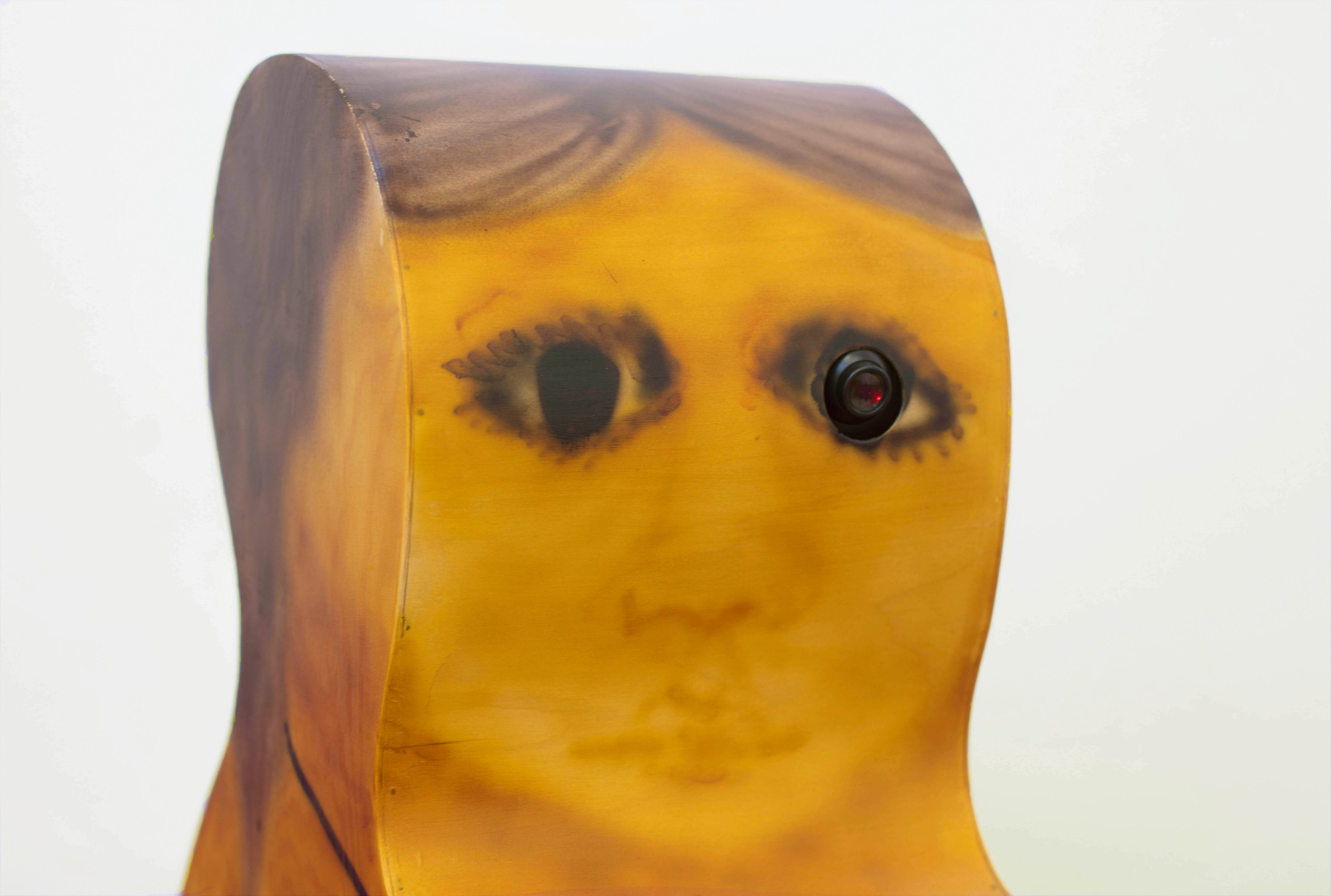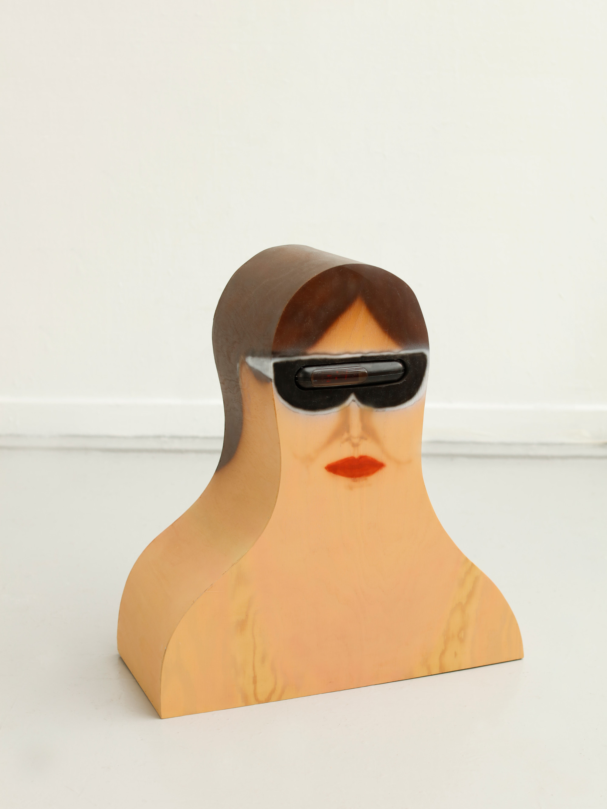 Plywood, digital clock projection (from one eye), acrylic